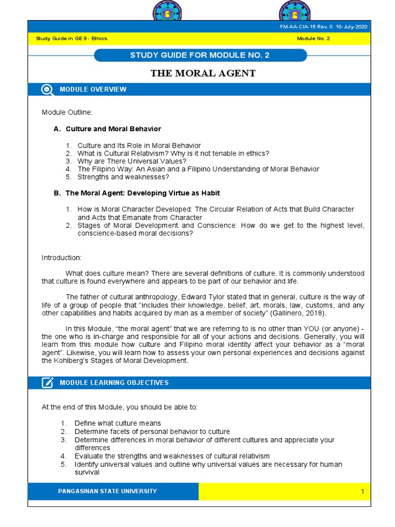 The Moral Agent Study Guide For Module No 2 Pdf Morality Relativism