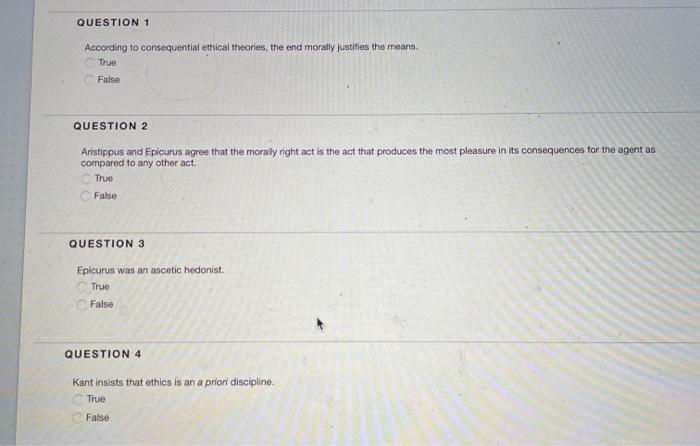 Question 1 According To Consequential Ethical Chegg Com